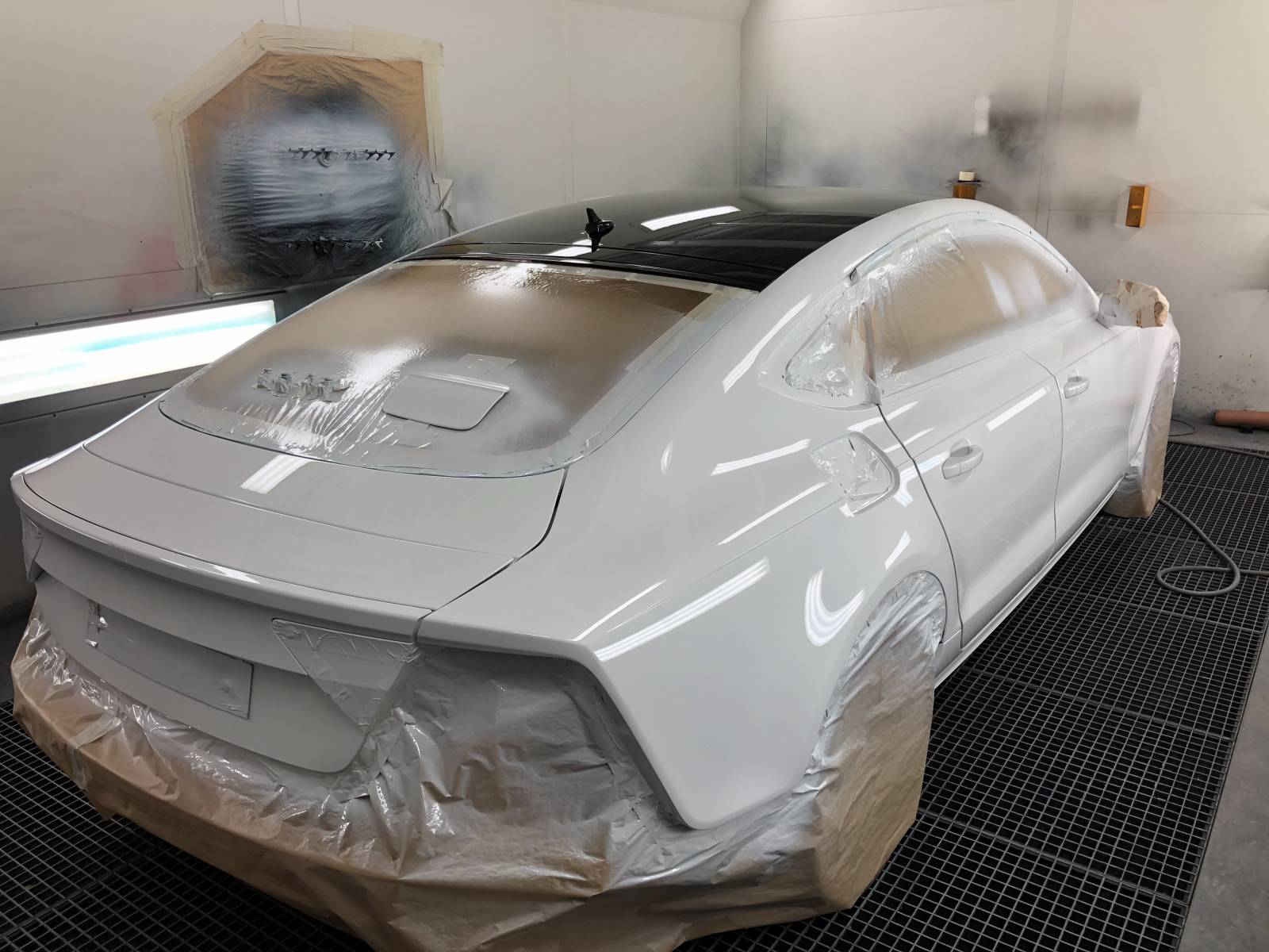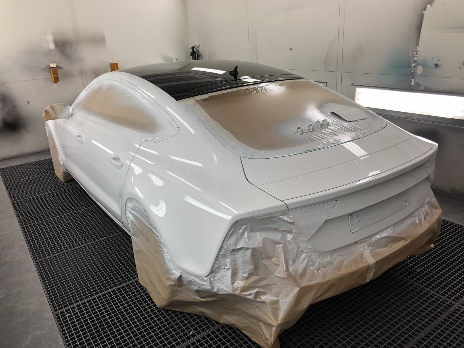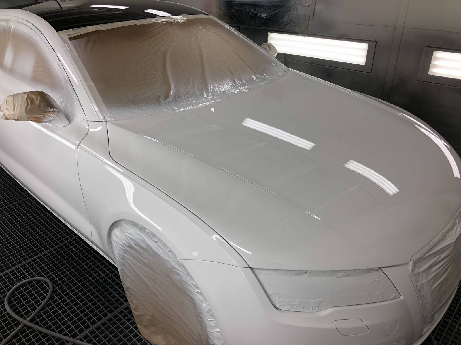 accident sur la route, aile arrière arraché, le client a appeler l assistance qui nous a remorqué le véhicule ,j ai pris contact avec l expert, qui est venu constaté les degat ,nous avons commandé les piece d origine au concessionaire audi, puis nous avons effectué les travaux ,changement d'aile arrière, dégarnissage de la voiture ,decoupé l'aile du véhicule pour la remplacer avec l'aile neuf soude proprement ,repeint la voiture et l'intérieur de l'aile,une fois le vehicule terminer nettoyage interieur et exterieur du vehicule contactez le client pour qu'il puisse récupérer son véhicule les travaux en était effectué en 5 jours