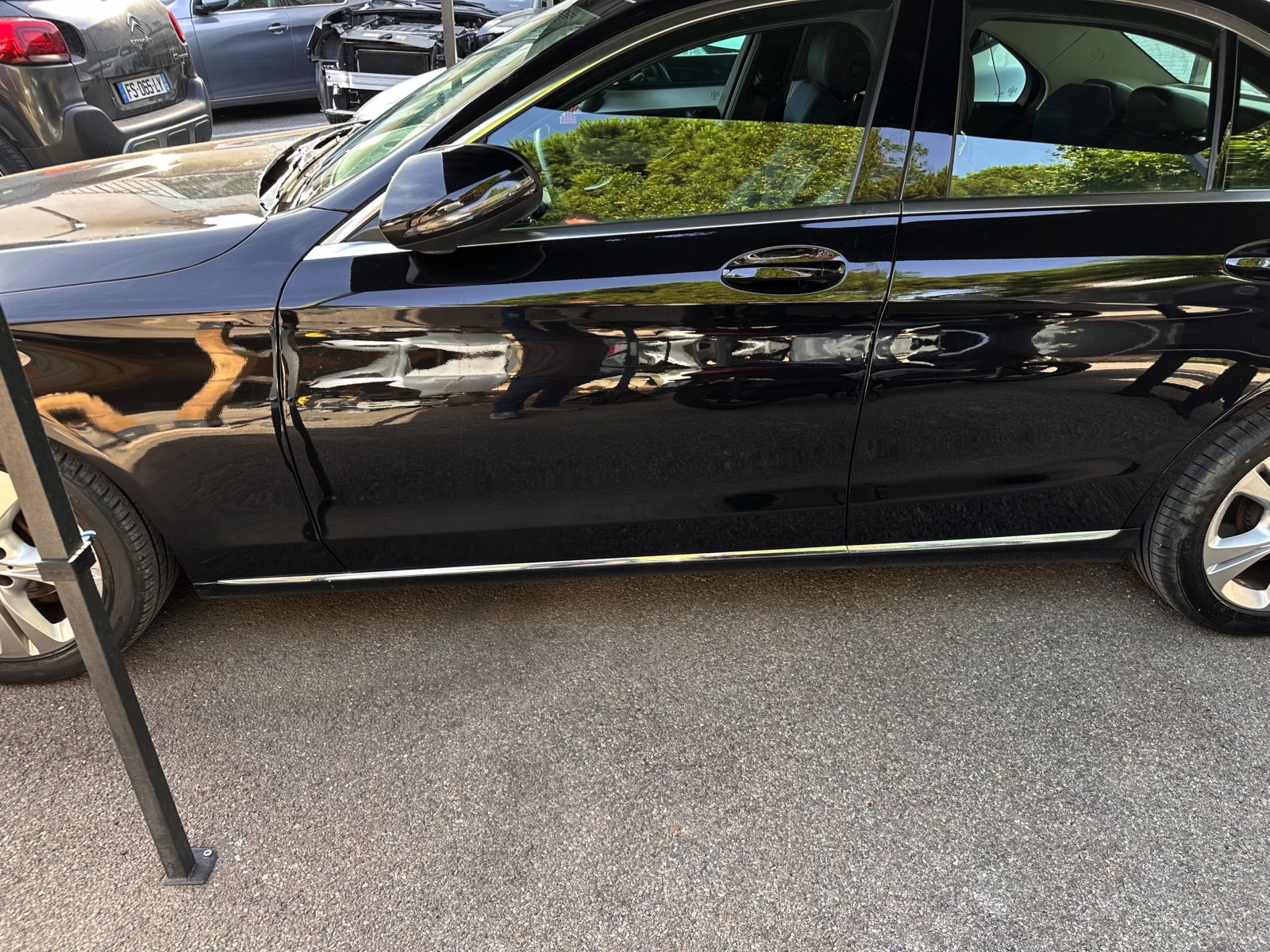 Le sociétaire a retrouvé son véhicule Mercedes Classe C abîmé sur la totalité du côté droit, tout enfoncé. Ceci a été causé par un autre véhicule non identifié, sans témoins ni caméra de surveillance.