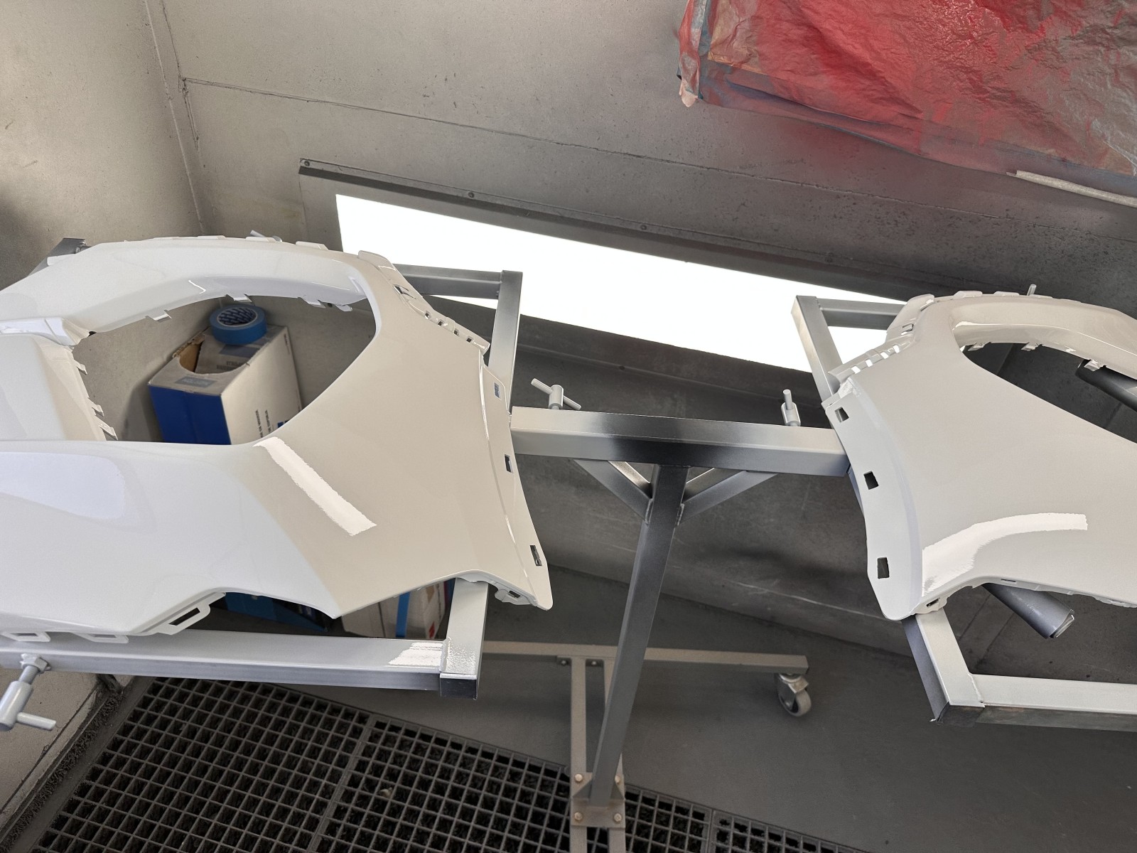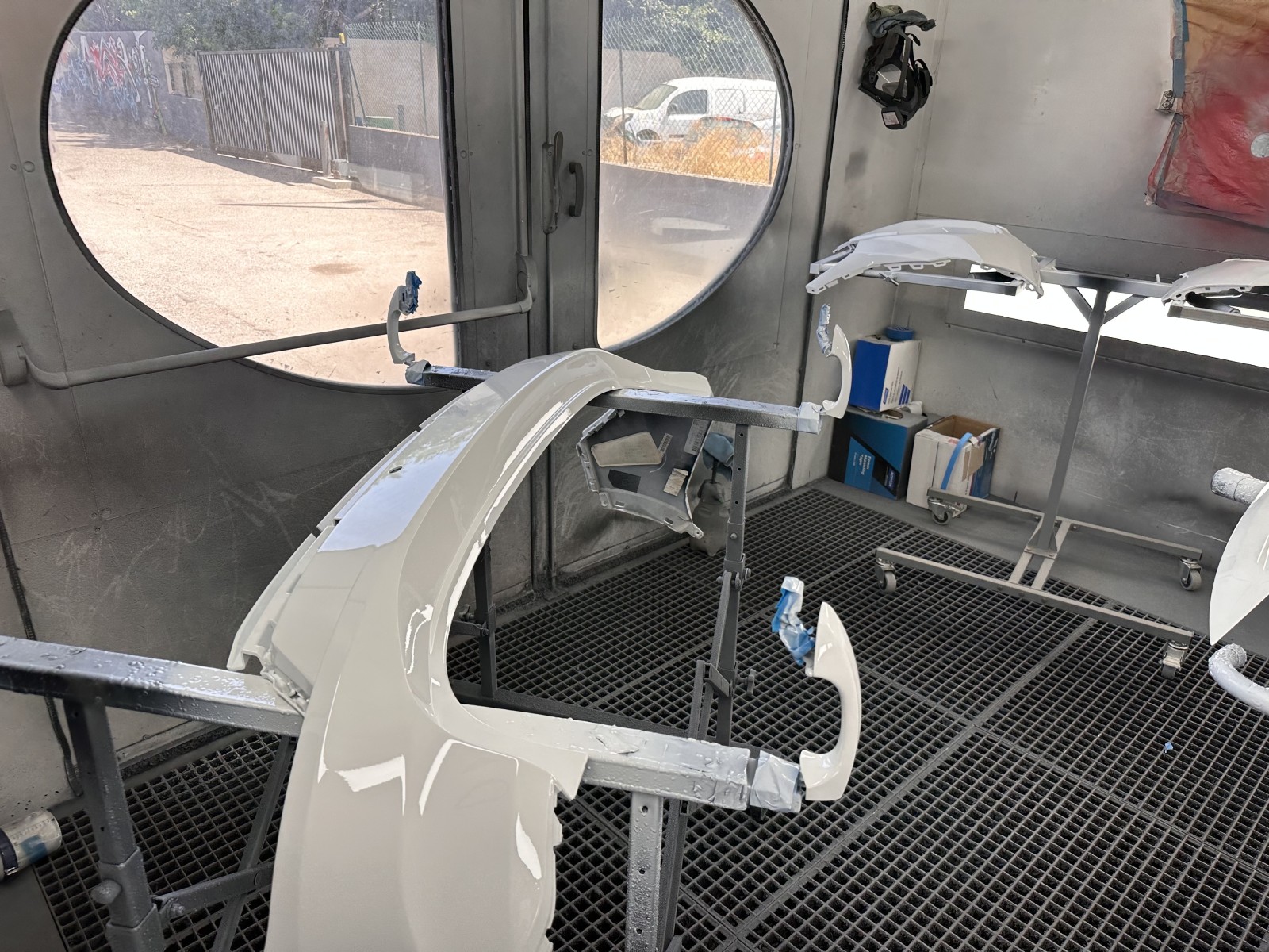 Lors des travaux nous avons changé des pièces du véhicule, poncé toutes les surfaces, apprêté la voiture entièrement, poncé l’après, préparé la voiture pour la mise en peinture, peint la voiture dans son intégralité. Une fois la peinture sèche, nous avons remonté le véhicule, lavé l’intérieur et l’extérieur avant de contacter notre client afin qu’il puisse récupérer son véhicule.