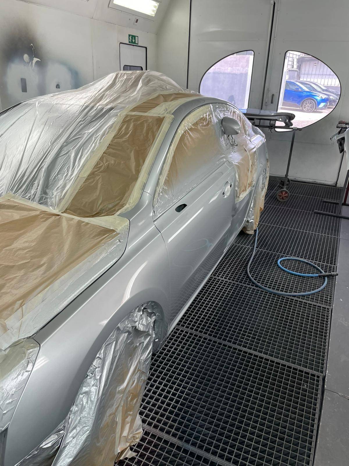 Une fois le véhicule préparez-nous l’avons rentrer en cabine peinture , Tous nos peintures et nos vernis sont de haut-de-gamme ,Nous sommes également équipé d’un spectraux qui sert à flasher les teintes des véhicules, pour qu’il y est aucune différence de teinte.